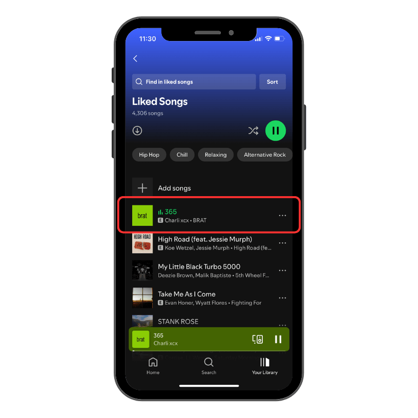 4) La canción se añade a tu lista de reproducción "Canciones que me gustan