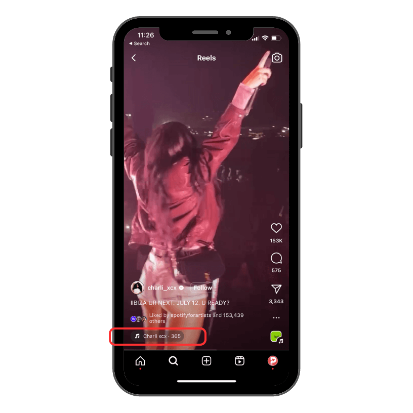 1) Ve a cualquier Instagram Reels o Post que utilice la canción de un artista