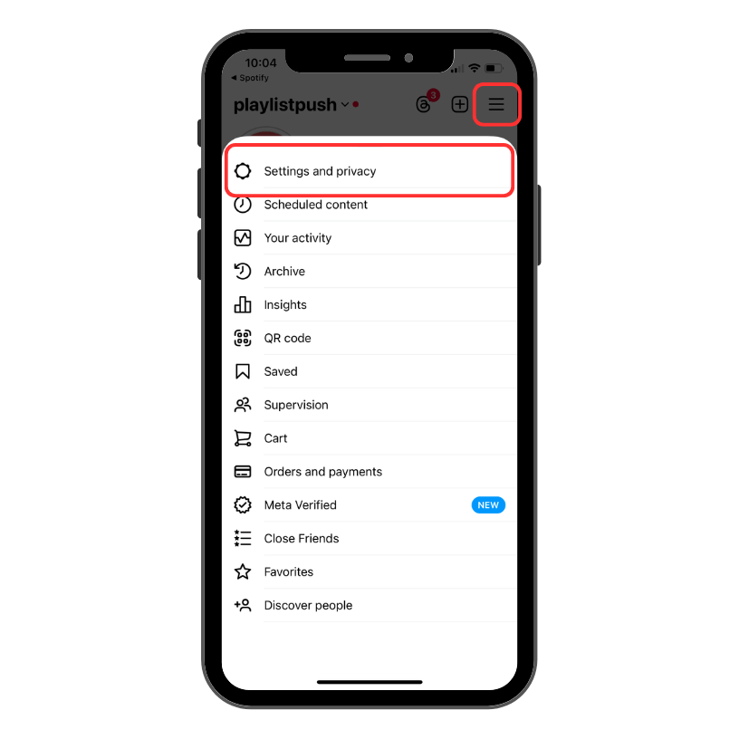 1) Ve a tu configuración de Instagram (toca las 3 líneas en la parte superior derecha de tu perfil)