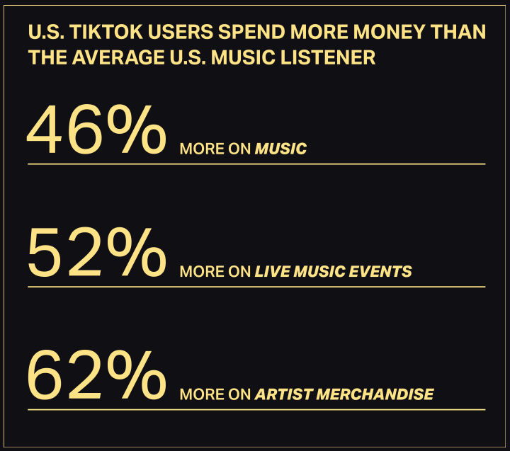 - Los usuarios TikTok gastan un 46% más de dinero en música en general,